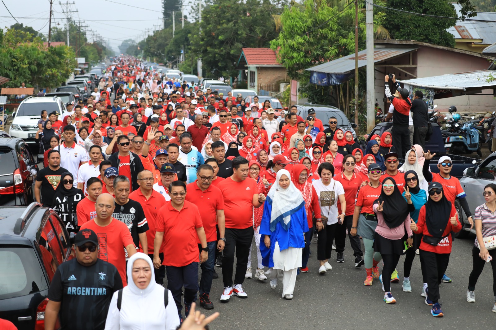 Jalan sehat yang diikuti ribuan peserta tersebut, mengambil rute dari Lapangan Olahraga Pobundayan ke arah Kelurahan Matali, kemudian menuju Kelurahan Motoboi Kecil dan kembali lagi Lapangan Olahraga Kelurahan Pobundayan dilanjutkan senam zumba.