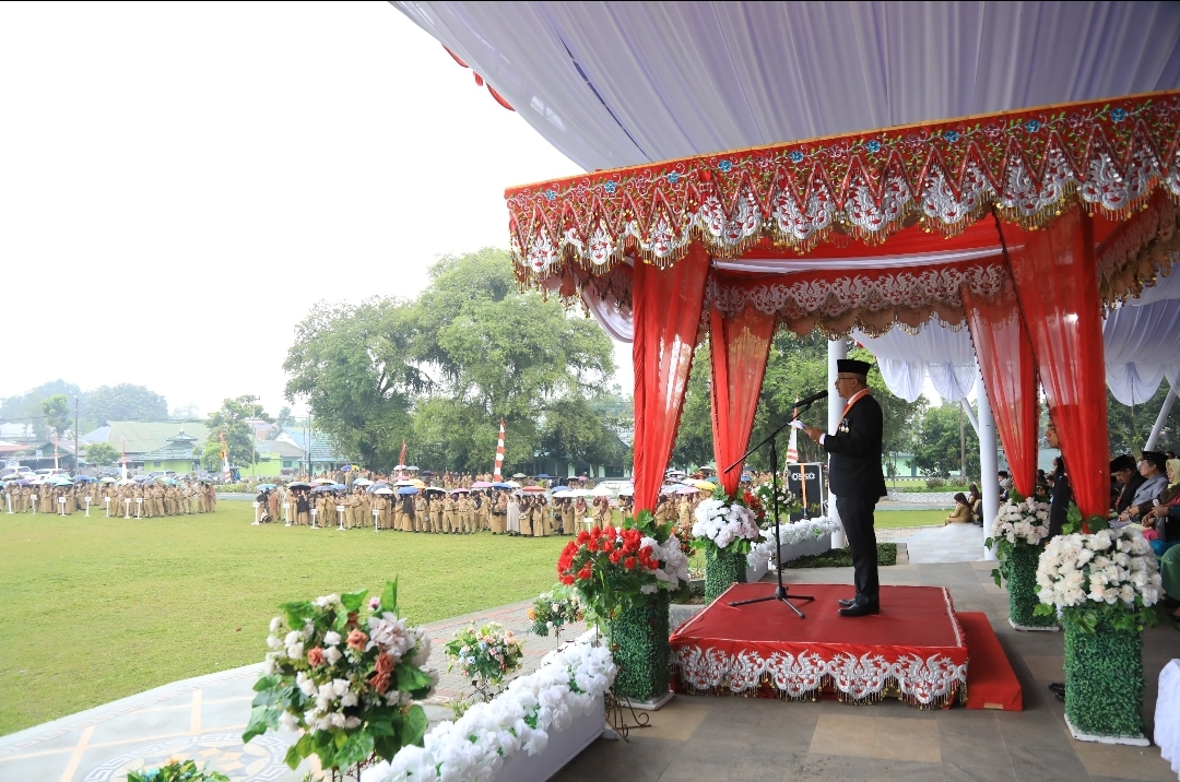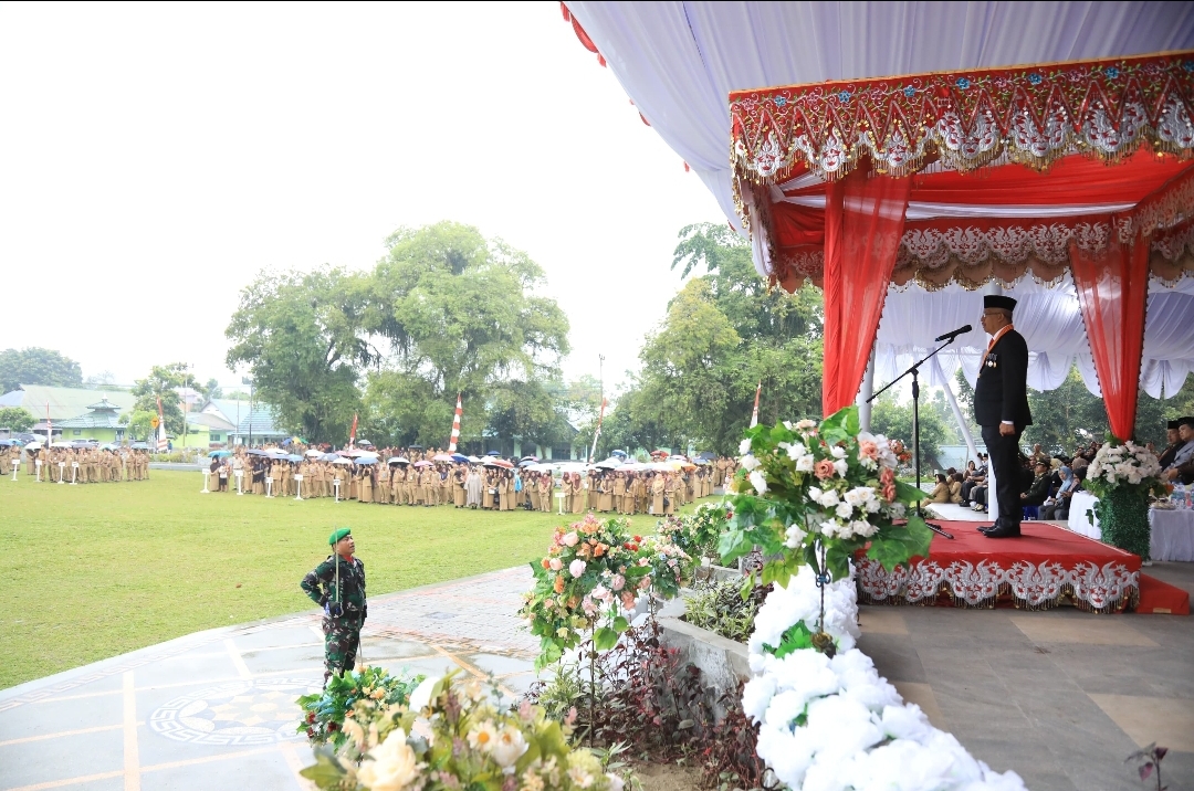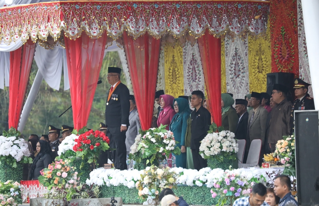 Penjabat Wali Kota Kotamobagu, Asripan Nani, bertindak selaku inspektur upacara sekaligus membacakan pidato Kepala Badan Pembinaan Ideologi Pancasila Republik Indonesia (BPIP RI) Yudian Wahyudi.