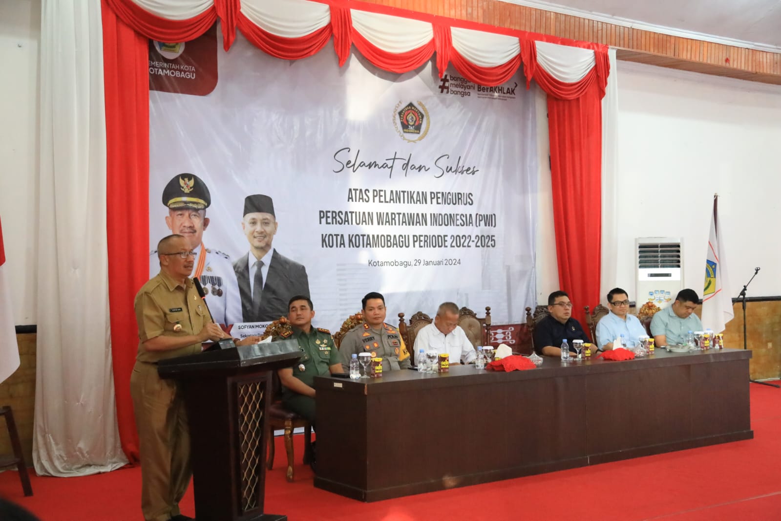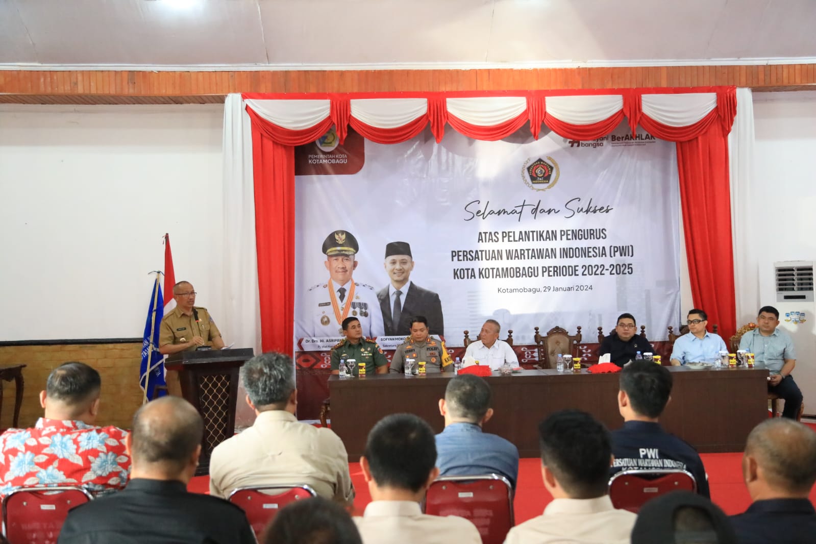 LIPUTANBMR.COM,KOTAMOBAGU– Ketua DPRD Kotamobagu Meiddy Makalalag ST menghadiri Pelantikan Pengurus Persatuan Wartawan Indonesia (PWI) Kota Kotamobagu, bertempat di Aula Rumah Dinas Walikota, Senin (29/1/2024).