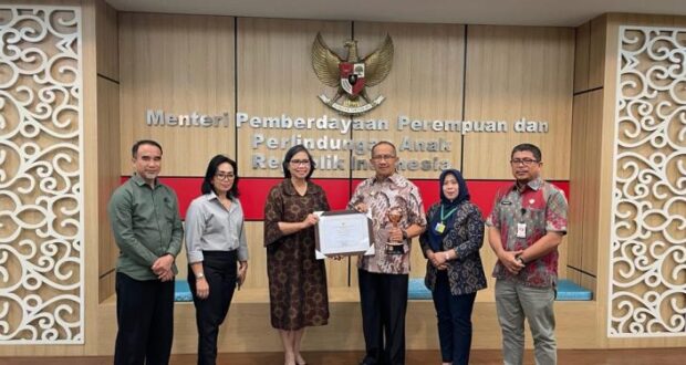 Penghargaan Anugerah Parahita Ekapraya diterima langsung oleh Penjabat Wali Kota Kotamobagu Asripan Nani, di Kantor Kementerian P3A Republik Indonesia di Jakarta, Rabu (7/2/2024).