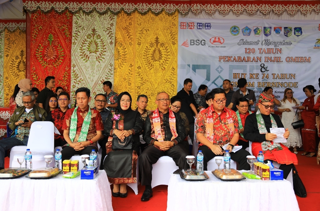 LIPUTANBMR.COM,KOTAMOBAGU- Penjabat Wali Kota Kotamobagu Asripan Nani bersama Wakil Gubernur Sulawesi Utara Steven O. E. Kandouw, menghadiri 120 Tahun Pekabaran Injil GMIBM dan HUT ke – 74 GMIBM Bersinode, bertempat di Alun-Alun Boki Hontinimbang Kotamobagu, Sabtu (6/7/2024).