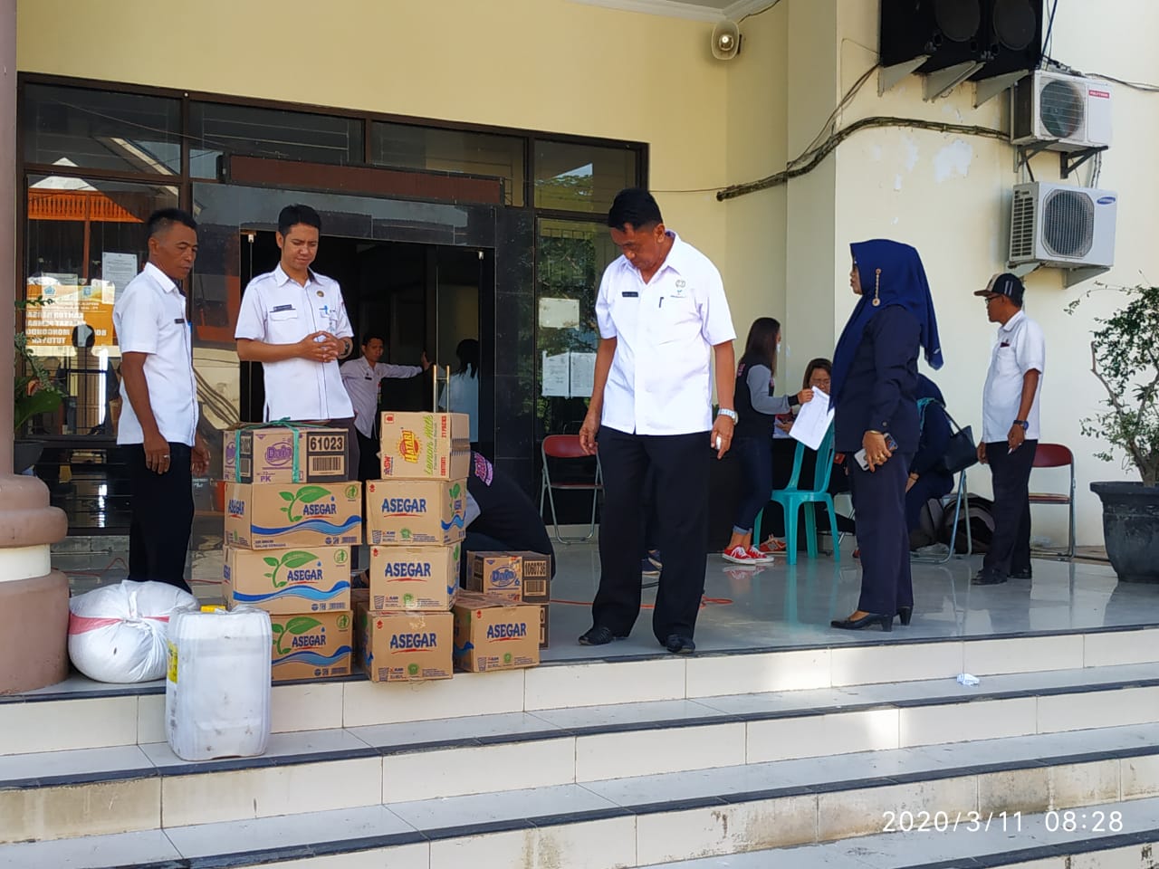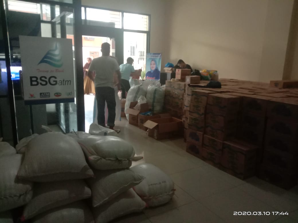 Pelepasan Tim Relawan Kemanusian oleh Bupati Boltim, Sehan Landjar SH guna mendampingi bantuan logistik berupa berupa beras 6,1 ton, Mie Instan, Air mineral, sabun mandi/cuci, sembilan bahan pokok, pakaian layak pakai dan alat tulis anak sekolahan dilaksanakan di Rumah Jabatan Bupati, Desa Togid, Tutuyan.