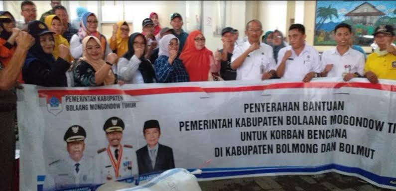 Bupati yang didampingi Ketua Tim Penggerak PKK, Nursiwin Dunggio bersama sejumlah Pimpinan Satuan Kerja Perangkat Daerah (SKPD) mengucapkan apresiasi dan terima kasih kepada Aparatur Sipil Negara (ASN) yang telah melakukan aksi sosial untuk masyarakat Bolmong dan Bolmut yang terkena musibah.
