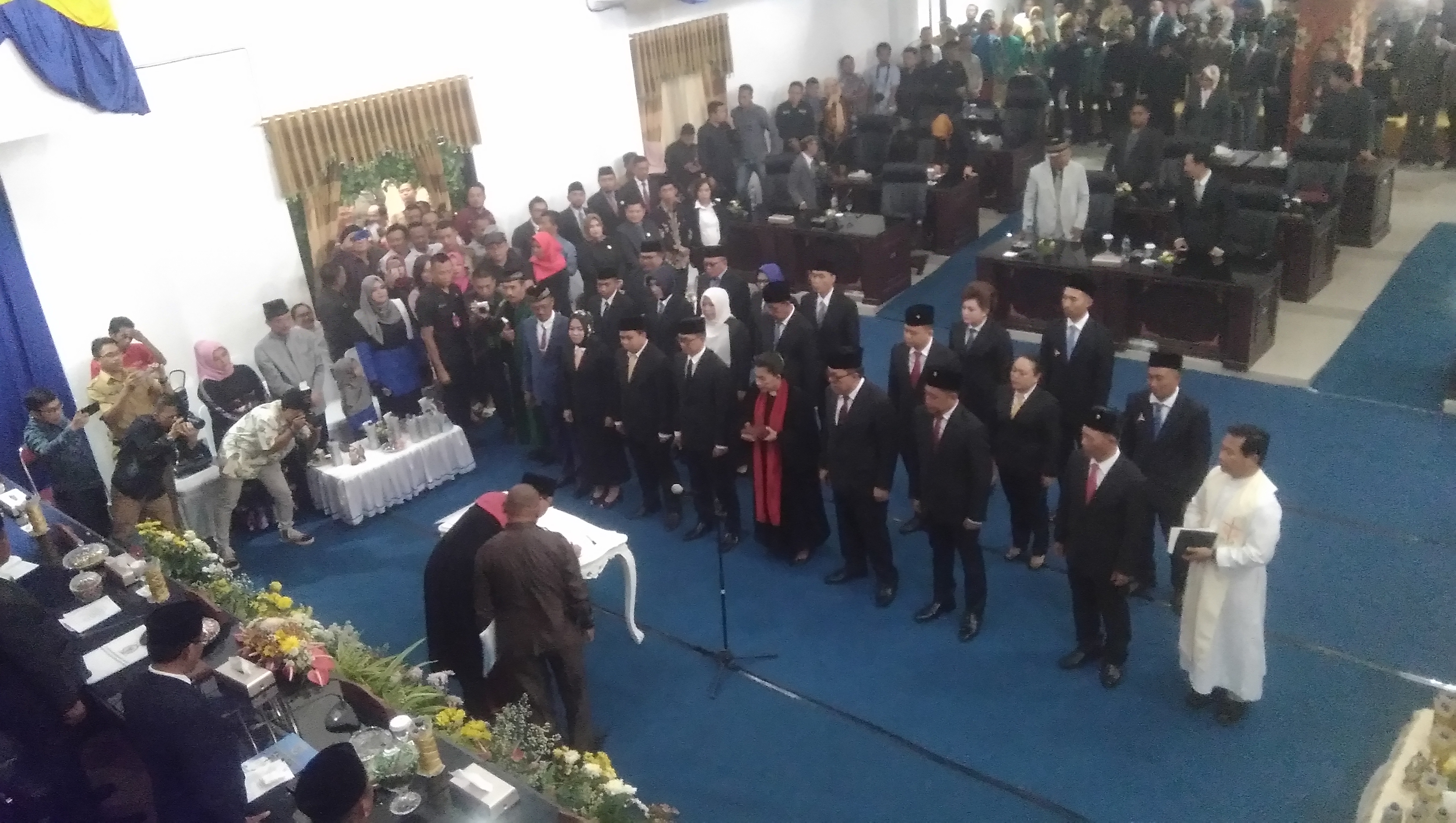 penandatanganan sumpah dan janji serta pakta integritas penyerahan jasa pengabdian oleh Bupati dan wakil Bupati kepada perwakilan anggota DPRD masa jabatan 2014 – 2019, yang dilanjutkan dengan pembukaan masa sidang Anggota Dewan periode 2019 – 2024 yang dipimpin langsung oleh Fuad Landjar SH dan Meidy Lensun sebagai Ketua dan Wakli Ketua sementara.