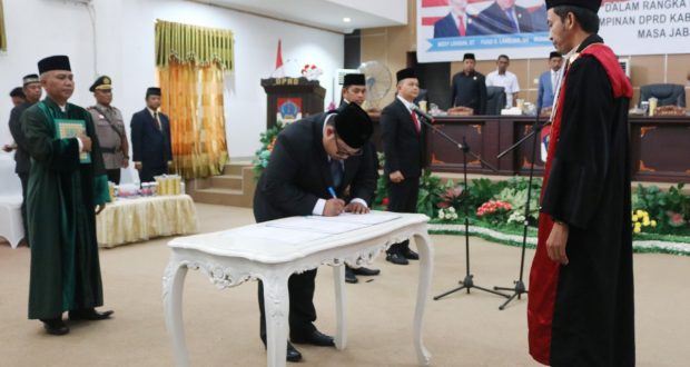 Dalam kesempatannya, Bupati Sehan Landjar menyampaikan selamat atas diresmikan tiga pimpinan DPRD periode 2019-2024. Dia berharap dengan diresmikannya tiga pimpinan DPRD, akan semakin memaksimalkan tugas dan kerja DPRD.