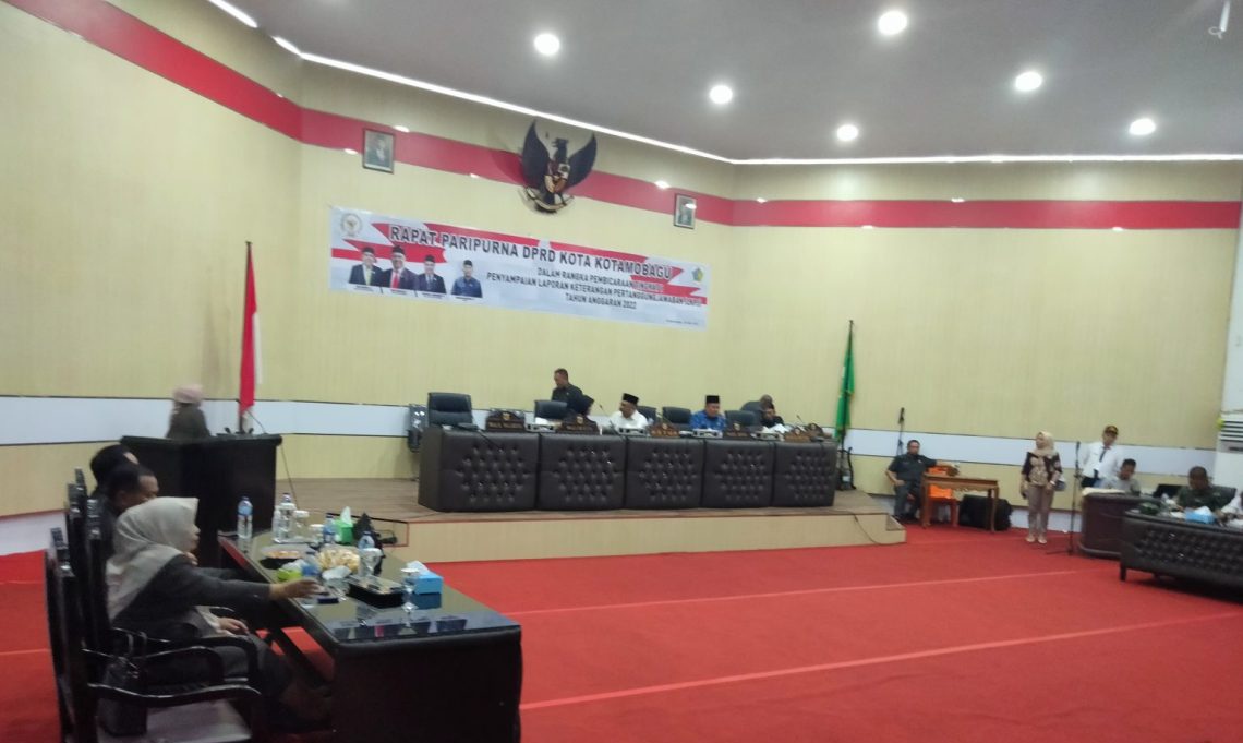 LIPUTANBMR.COM, KOTAMOBAGU– DPRD Kotamobagu menggelar rapat paripurna pembicaraan tingkat I penyampaian Laporan Keterangan Pertanggung Jawaban (LKPJ) Pemerintah Kota (Pemkot) Kotamobagu tahun anggaran 2022.
