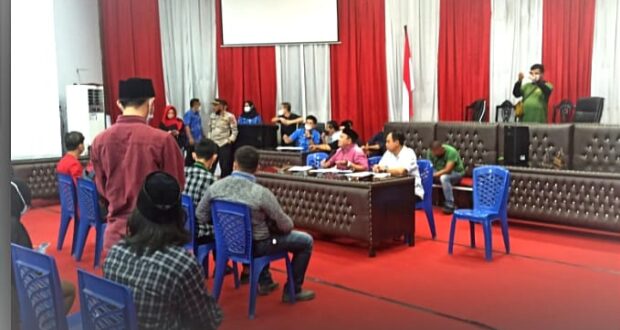 LIPUTANBMR.COM, KOTAMOBAGU— Ketua Komisi III Jusran D. Mokalanot bersama sejumlah anggota DPRD Kotamobagu menerima aspirasi puluhan mahasiswa gabungan yang terdiri dari PMII, HMI, IMM, GMNI dan GMKI, Kamis 14 April 2022.