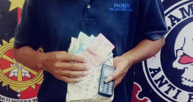 Dari pelaku MS didapat sejumlah barang bukti uang tunai Rp 1 Juta 917 ribu hasil uang tebakan nomor 1 unit Hp Nokia warna hitam dan 1 buah buku Tafsir mimpi.