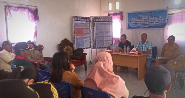 LIPUTANBMR.COM, HUKRIM– Sosialisasi penyuluhan hukum oleh Kejaksaan Negeri Kotamobagu dan Polres Boltim bagi perangkat pemerintah dan aparatur desa di wilayah Kabupaten Bolaang Mongondow Timur, hingga saat ini masih terus bergulir.