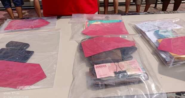 Dalam penangkapan ke tujuh tersangka, polisi menyita sejumlah barang bukti berupa Uang tunai, Pulpen, Dompet, Kartu ATM, Handphone, Buku tafsir angka dan buku tulis.