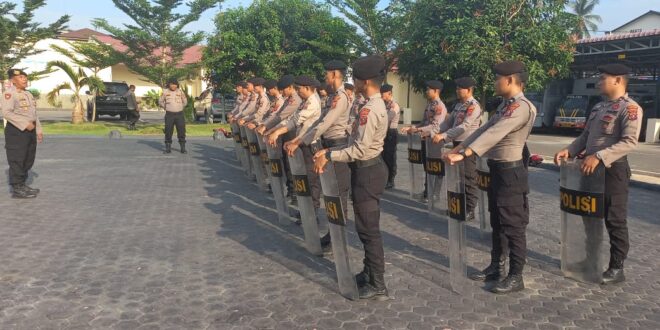 Batu Bara, Liputanbmr.com – Personil Sat Samapta Polres Batu Bara melaksanakan apel pagi di pimpin Kasat Samapta, AKP Juni Hendrianto dilanjutkan latihan kegiatan peningkatan kemampuan personil dalam masyarakat (dalmas) dengan menggunakan alat.