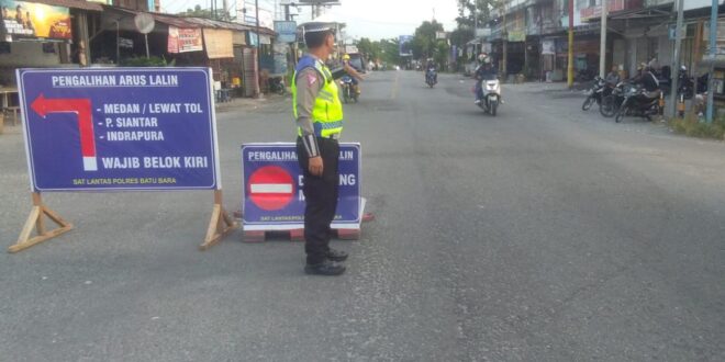 BATU BARA, LIPUTANBMR – Personil Sat Lantas Polres Batu Bara menggelar pengaturan arus lalu lintas (lalin) di titik-titik lokasi yang dianggap rawan lakalantas di wilayah hukum Polres Batu Bara, Senin (15/4/2024).