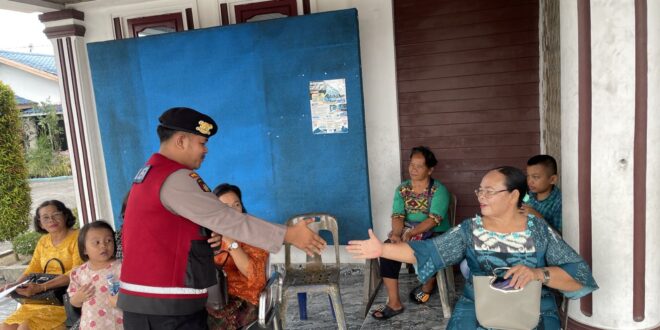 BATU BATU, LIPUTANBMR – Polres Batubara berikan Pelayanan kepada Masyarakat saat melaksanakan Ibadah di Gereja-Gereja di Wilayah Kabupaten batubara, Minggu, (16/06/2024).