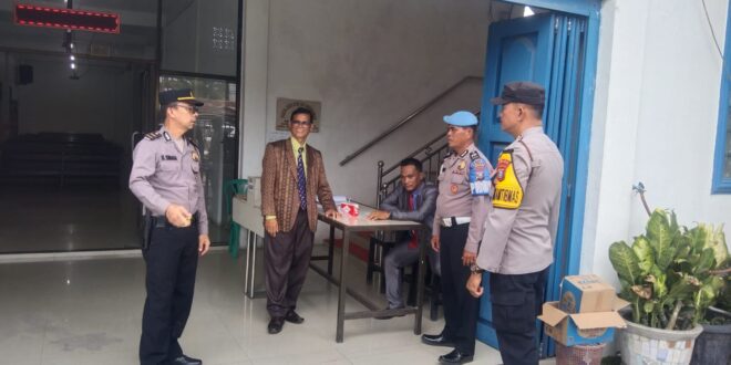 BATU BARA, LIPUTANBMR – Polres Batubara berikan Pelayanan kepada Masyarakat saat melaksanakan Ibadah di Gereja-Gereja di Wilayah hukum Batubara, Minggu, (09/06/2024).