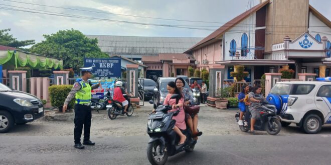 BATU BARA,LIPUTANBMR – Polres Batubara berikan Pelayanan kepada Masyarakat saat melaksanakan Ibadah di Gereja-Gereja di Wilayah hukum Batubara, Minggu, (09/06/2024).