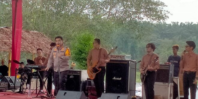 BATU BARA, LIPUTANBMR – Kapolres Batu Bara AKBP Taufiq Hidayat Thayeb SIK MH, tampil menyumbangkan lagu di acara Halal Bi Halal Pemerintahan Kabupaten Batu Bara yang terlaksana di Desa Laut Tador, Kecamatan Laut Tador, Kabupaten Batu Bara.