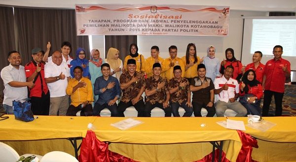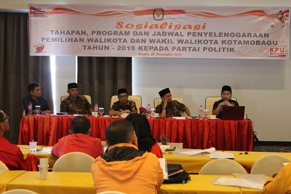 Sosialisasi yang dibuka langsung Ketua KPU Kota Kotamobagu Nova Tamon, didamping seluruh Komisioner, dan di hadiri oleh parpol, yakni PAN, Golkar, PDI-P, PKS, PKB, Demokrat, Gerindra, dan Hanura, yang dipandu langsung Sekretaris KPU Kota Kotamobagu, Frans TA Manoppo. Turut hadir Kepala Dinas Kependudukan dan Pencatatan Sipil (Dukcapil) Kota Kotamobagu Virgina Olii, Kepala Badan Kesbang Riyanto Mokoginta serta para Camat se Kota Kotamobagu.