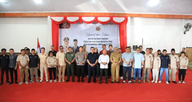 LIPUTANBMR.COM,KOTAMOBAGU – Pj Wali Kota Kotamobagu, Asripan Nani, menghadiri Pelantikan Pengurus Persatuan Wartawan Indonesia (PWI) Kota Kotamobagu Masa Bakti 2022 – 2025, Senin (29/1/2024) bertempat di Aula Rumah Dinas Walikota.