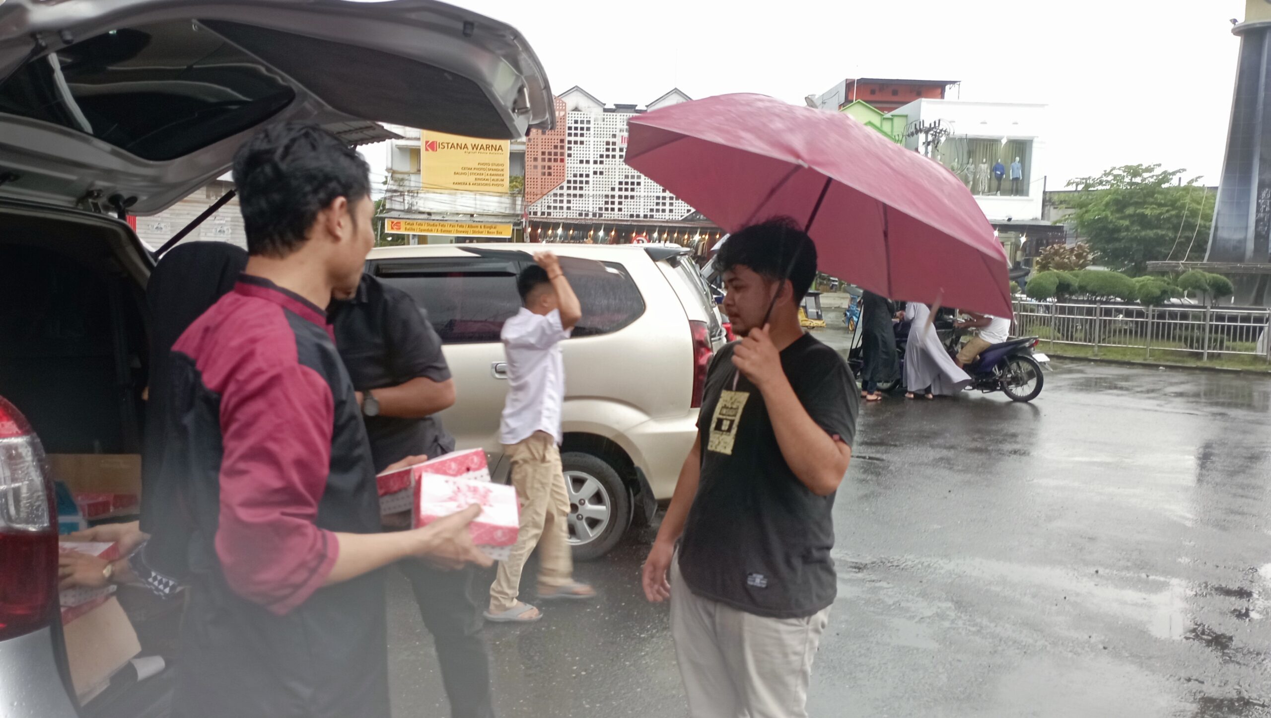 Meski sempat di guyur hujan, Pembagian takjil tetap berlangsung, Kegiatan ini dipusatkan di Bundaran Paris Kotamobagu (8/4/2023), Aktifitas ini mendapat sambutan yang baik dari masyarakat Kotamobagu yang sempat melintasi di jalur pembagian takjil.