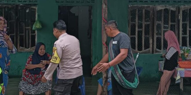 Batu Bara, Liputanbmr.com – Bhabinkamtibmas Polsek Lima Puluh Polres Batu Bara, Bripka KR Aruan turun kelokasi warga disalah satu Desa wilayah hukum Polsek Lima Puluh monitoring dan pelayanan terhadap warga yang terdampak banjir. Jumat (28/11/2025)