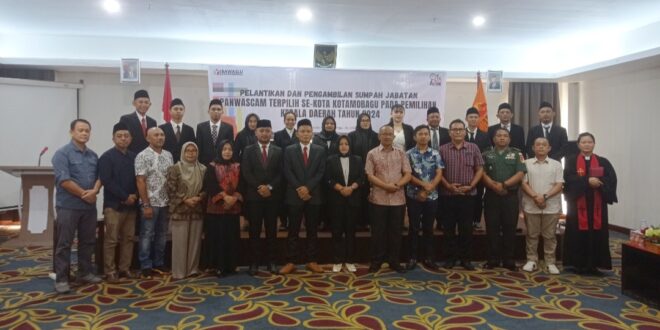 LIPUTANBMR.COM,KOTAMOBAGU – Bawaslu Kota Kotamobagu resmi lantik 12 anggota Panitia Pengawas Pemilu Kecamatan (Panwascam) se Kota Kotamobagu untuk pemilihan kepala daerah (Pilkada) tahun 2024 resmi dikukuhkan.