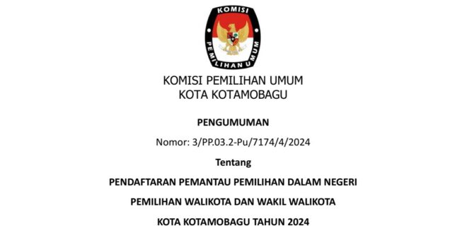 LIPUTANBMR.COM,KOTAMOBAGU – KPU Kotamobagu resmi buka pendaftaran Pemantau Pemilihan Dalam Negeri Pemilihan Walikota dan Wakil Walikota Kotamobagu tahun 2024.