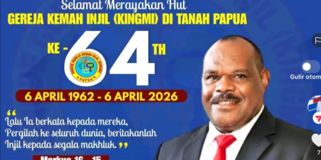 Momentum perayaan HUT ke-64 KINGMI ini, lanjutnya, menjadi refleksi bersama bagi seluruh jemaat untuk terus memperbarui hidup dalam iman serta mewujudkannya dalam tindakan nyata di tengah masyarakat.