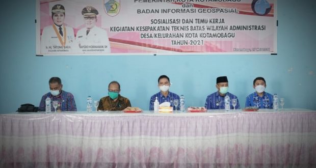 LIPUTANBMR.COM, KOTAMOBAGU– Pemerintah Kota (Pemkot) Kotamobagu bekerjasama dengan Badan Informasi Geospasial menggelar sosialisasi dan temu kerja kegiatan kesepakatan teknis batas wilayah administrasi desa/kelurahan Kota Kotamobagu tahun 2021.