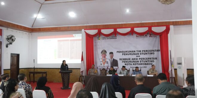 LIPUTANBMR.COM,KOTAMOBAGU – Pemerintah Kota (Pemkot) Kotamobagu gelar rembuk aksi percepatan penurunan stunting dirangkaikan acara pengukuhan Tim Percepatan Penurunan Stunting Tingkat Kota Kotamobagu, Jumat (5/4/2024).