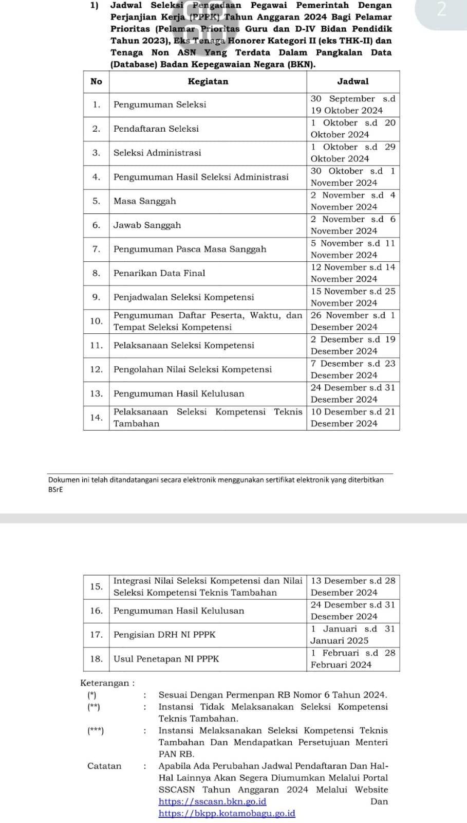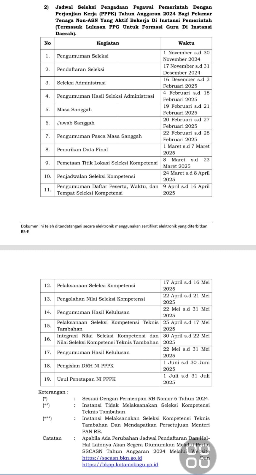 Hal tertuang dalam pengumuman nomor 003/SETDA-KK/413/IX/2024, yang diterbitkan Pemkot Kotamobagu tentang seleksi pengadaan PPPK di lingkungan Pemerintah Kota Kotamobagu tahun anggaran 2024, tertanggal 30 September 2024.