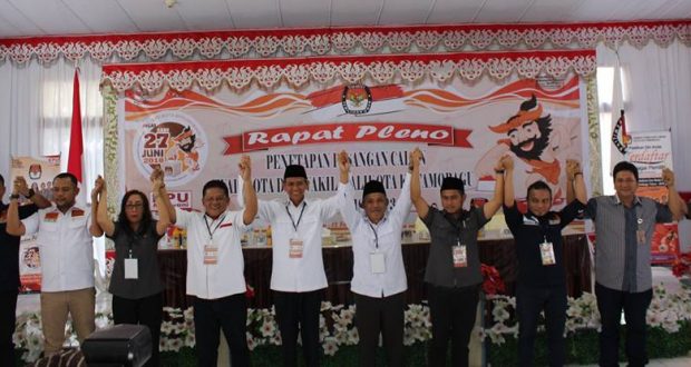 LiputanBMR.com, Kotamobagu – Rapat Pleno Terbuka, Senin (12/2/2018), KPU Kota Kotamobagu menetapkan dua bakal pasangan calon (Paslon), pada pemilihan Walikota dan Wakil Walikota Kota Kotamobagu 2018 ini, Paslon tersebut adalah Tatong Bara-Nayodo Koerniawan (TB-NK) dan Jainuddin Damopolii-Suharjo Makalalag (JaDi-Jo).
