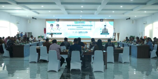 Asahan, Liputanbmr.com – Bupati Asahan, Taufik Zainal Abidin resmi membuka Rapat Koordinasi Pemerintahan (Rakorpem) Bulan November 2025 yang berlangsung di Aula Melati Kantor Bupati Asahan, Jumat (21/11/2025).