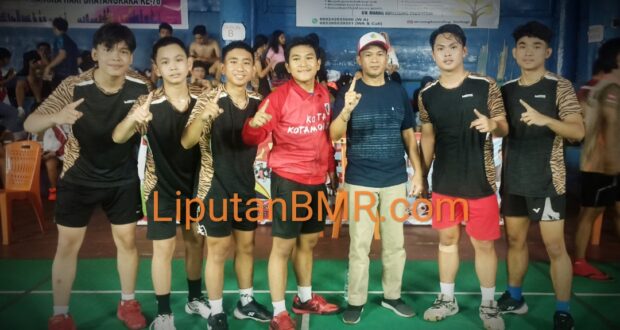 Kota Kotamobagu menumbangkan tim bulutangkis beregu putra Manado dengan skor 2-O. Kedua partai dimenangkan straight game.