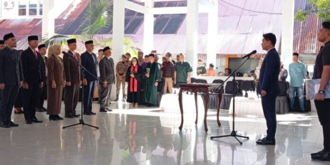 Kotamobagu, LiputanBMR.com,– Wakil Wali Kota Kotamobagu, Rendy Mangkat, melantik dan mengambil sumpah jabatan 19 pejabat Eselon II di lingkungan Pemerintah Kota Kotamobagu. Prosesi pelantikan berlangsung di Aula Kantor Wali Kota Kotamobagu, Jumat (9/1/2026), dalam suasana khidmat.