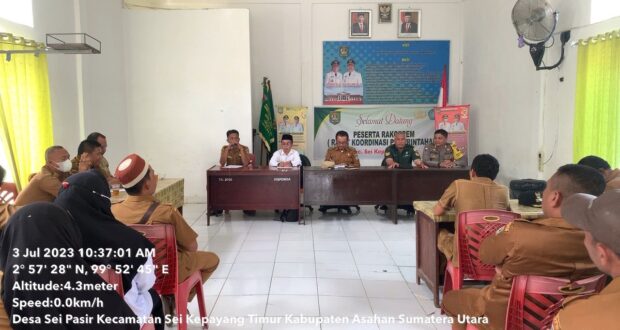 Asahan – LiputanBMR | Bhabinkamtibmas Polsek Sei Kepayang Menghadiri Rapat Kordinasi Pemerintahan Kecamatan Sei Kepayang Timur Kabupaten Asahan Senin (03/07/2023).