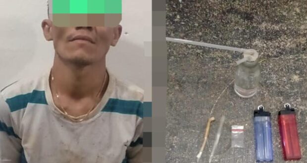 Saat penggeledahan petugas berhasil mendapatkan sejumlah barang bukti 1 Buah Bong/Alat hisap, 1 buah Kaca Virex berisikan narkotika jenis sabu, 1 buah pelastik transparan berisikan sisa narkotika jenis sabu, 2 buah mancis, 2 buah Jarum, 1 buah sekop/dari pipet dan 1 unit HP android OPPO warna biru.